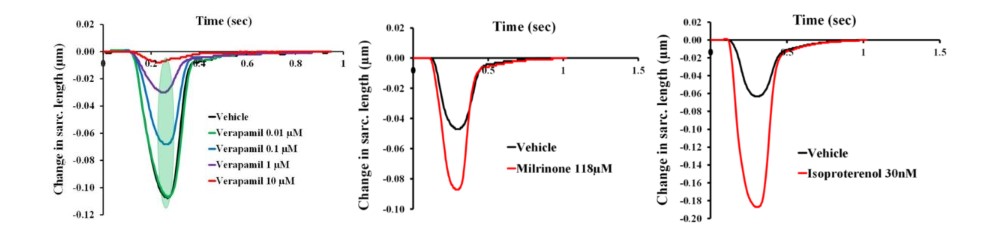 图 2:利用人源原代心肌细胞检测正性与负性肌力作用